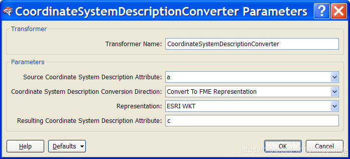 上图: CoordinateSystemDescriptionConverter参数对话框
