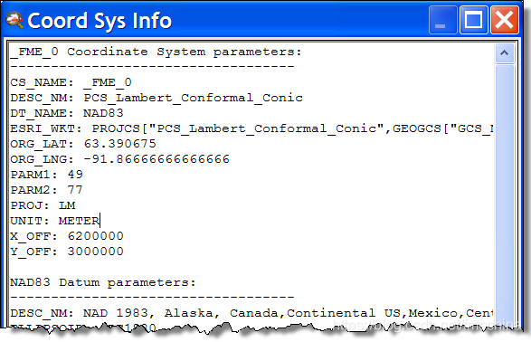 我从我们的一位开发人员处获得此工作区 ,它 将告诉我与此未知坐标系相当的FME是什么: