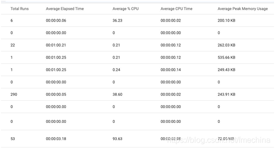 - 平均CPU百分比:实际处理所花费的时长,并不包括任何的网络活动。(平均CPU时间/平均运行时间)