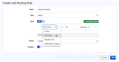 在这个图片里的例子中,我正在创建一个任务路由规则(Job Routing Rules), 其中任何占用内存超过2GB的工作空间都将被分配给myQueue。通过这种方法,我可以在有足够可用内存的机器上分配引擎以处理它们。通过限制所使用的引擎数量,我可以确保系统也有足够的资源,不会让处理过程陷入停顿。