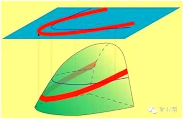标签:岩层坡向等高线沟谷弯曲度杂谈 分类:地质工作方法 由于地表面一般为起伏不平的曲面,倾斜岩层的地质分界线在地表的露头也就变成了与等高线相交的曲线。当其穿过沟谷或山脊时,露头线均呈“V”字形态。根据岩层倾向与地面坡向的结合情况,“V”字形会有不同的表现: