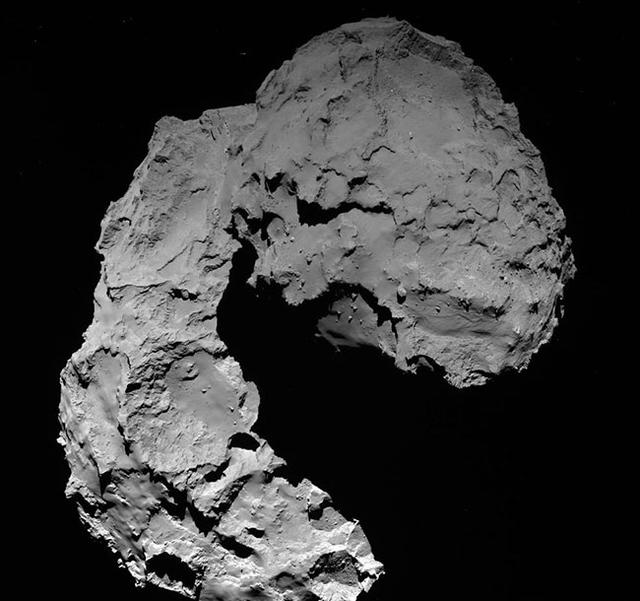 这张照片由罗塞塔号OSIRIS广角相机拍摄于2016年9月29日,距离67P彗星表面约23公里。来源:ESA