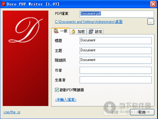 Doro PDF Writer(pdf打印机64位)使用方法:这款pdf虚拟打印机支持64位系统。在office里打印选择“Doro PDF Writer”。如果要使用密码要先选择“Use 128-bit encryption”,这个虚拟的PDF印表机好处是在于可以分二种密码,一个是给一般浏览者并设定权限,另一个则是自己本身可以用完整的权限再进行其它操作。设定好后,按下“Create”就会自动建立。