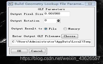 图2.2.7 Build Geometry Lookup File Parameters面板 第三步:利用GLT文件几何校正影像 (1) 在Toolbox中,选择/Geometric Correction/Georeference from GLT,在弹出的Input Geometry Lookup File对话框中选择GLT文件,在Input Data File对话框中选择待校正文件。 注:由于从HDF5数据集中打开的文件名称都一样,可通过左边的File Information来判断选择的文件。