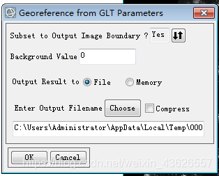图2.2.8 利用GLT文件几何校正时数据输入 (2) 选择输出路径和文件名,如下图所示。