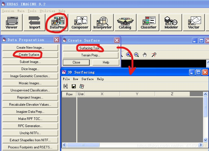 通过dat文件可视化高程点: 1.点击DataPrep模块,选择Create Surface,选择Surfacing Tool,弹出下图窗口