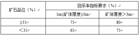 1)、露天开采。 开采回采率≥90% 2)、地下开采。 开采回采率≥70%