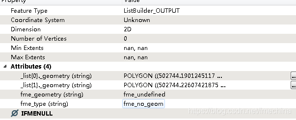 查看改良后流程,一共就五个转换器,比之前的实现流程可简洁不少。而且可以在FME处理流程中的任何一个节点进行操作,不需要额外地读写。 整个思路已经比较明确了,模板的实现也很随意: 一、将数据转换成WKT数据 就是利用GeometryExtractor,提取转换成为WKT字符串,然后ListBuilder组合成数组,没什么可讲的。 这一步需要注意一点的是,在arcgis中,面要素是由节点按顺时针方向组成外边界,环岛的内边界按照逆时针排序的。但如果我们直接在arcgis里使用字段计算器计算的WKT,却是逆时针排序的。 所以,如果不调整节点的方向,当下一步在转换过程中,由WKT再转成polygon时,polygon的面积为负的情况。 因此,在转换WKT之前,我们需要利用Orientor调整面要素的节点方向为逆时针方向。