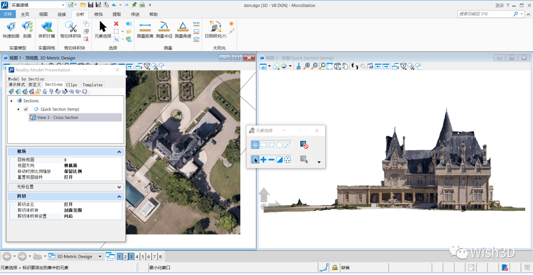 在Descartes对模型进行平立剖操作,生成建筑剖面线、建筑物立面正射影像的生成。(规划设计)