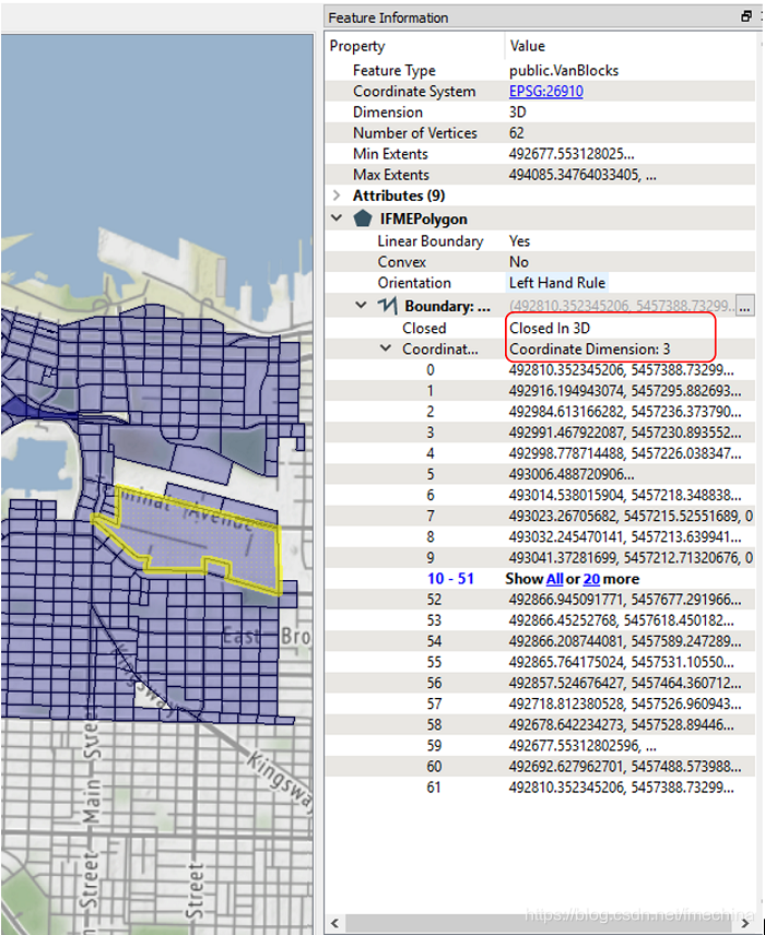 注意:由于在坐标维度中指定了Z坐标,因此如果使用默认输出维度“第一个要素的尺寸”,Shapefile 写模块将假定输出为3D。