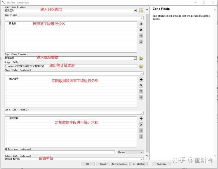 分析工具箱 点开Clip裁剪工具,裁剪工具的使用如下图所示  clip工具的使用 点开select选择工具,选择工具的使用如下图所示  select工具的使用 点开split分割(拆分)工具,分割工具的使用如下图所示  split工具的使用Table select工具和Select工具类似,只不过Table select工具是输出的是表格记录,Select工具则输出的是矢量要素,这里就不贴图了。 点开叠加分析工具里的Erase擦除工具,擦除工具的使用如下图所示  Erase擦除工具的使用 Identity标识工具是数据处理中常用的工具,是底图数据为了获取标识数据的属性,输出的结果范围是底图数据的范围,并且按照标识数据的范围进行切割,并获取标识数据的属性,标识工具的使用如下图所示  identify工具的使用 intersect相交工具和identify工具有点类似,但是相交工具输出的仅仅是各输入图层相交的部分,即各图层共有的范围,属性则是所有图层的属性。如下图所示  intersect工具的使用 Spatial join空间挂接工具常用于两个具有空间联系的要素进行的属性连接,比如有一个面图层和点图层,每个面图层里有一个或者多个点,如果需要在面图层获取点图层的属性,则可以用到空间挂接工具。  spatial join工具的使用 Symmetrical Difference提取差异部分工具,这个工具跟上面的intersect工具刚好相反,输出的结果是两个图层不相交的部分,即两者不共有的部分。属性表为两个图层合并后的属性表。这里就不贴图了。 Union联合工具,这个工具是将多个图层进行联合,输出结果为保留所有图层的所有要素,属性为所有图层的属性表的结合。  union工具的使用 Update更新工具,这个工具跟union工具有点类似,要素为保留两个图层的要素,即用更新图层要素去更新底图的数据,但是属性保留的仅是底图数据的属性。  update工具的使用 Proximity工具里常用的有Buffer缓冲工具和Multiple Ring Buffer多环缓冲工具,如下图所示  buffer工具的使用 Multiple Ring Buffer多环缓冲工具的使用 statistics工具箱里的frequency频数工具,是针对要素数据或者表格数据的某一属性字段进行出现的批数进行统计,这对某一要素字段统计是否具有重复值有很大的帮助。  frequency频数工具的使用 Summary Statistics数据统计工具,经常可以用来对某一数据按照分组的形式进行面积的求和。如下图所示  Summary Statistics数据统计工具的使用 Tabulate Intersection分区汇总工具和Summary Statistics数据统计工具有点类似,但是Tabulate Intersection分区汇总工具加入了一个叫做分区的图层,即按照分区的范围进行分别汇总数据,其使用如下图所示  Tabulate Intersection分区汇总工具的使用