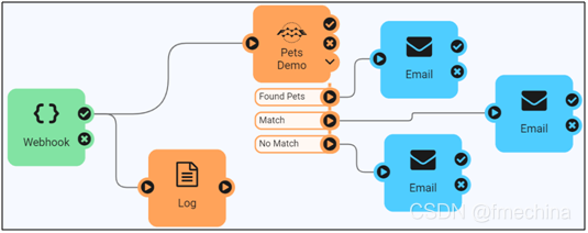 第 3 步:用电子邮件回复市民为了节省更多时间,对市民的回应可以自动化。为此,我们在FME服务器中结合了工作空间实现自动化。在自动化流程添加一个webhook触发器,这样当一个报告表单完成时,工作区将运行并发送一封电子邮件给市民,市民可通过邮件内容下载反馈的结果信息。 在我们的演示中,电子邮件包含有关可能与丢失宠物匹配的已找到宠物的信息,包括它们的种类、品种、颜色和照片,以及有关附近动物收容所的信息。